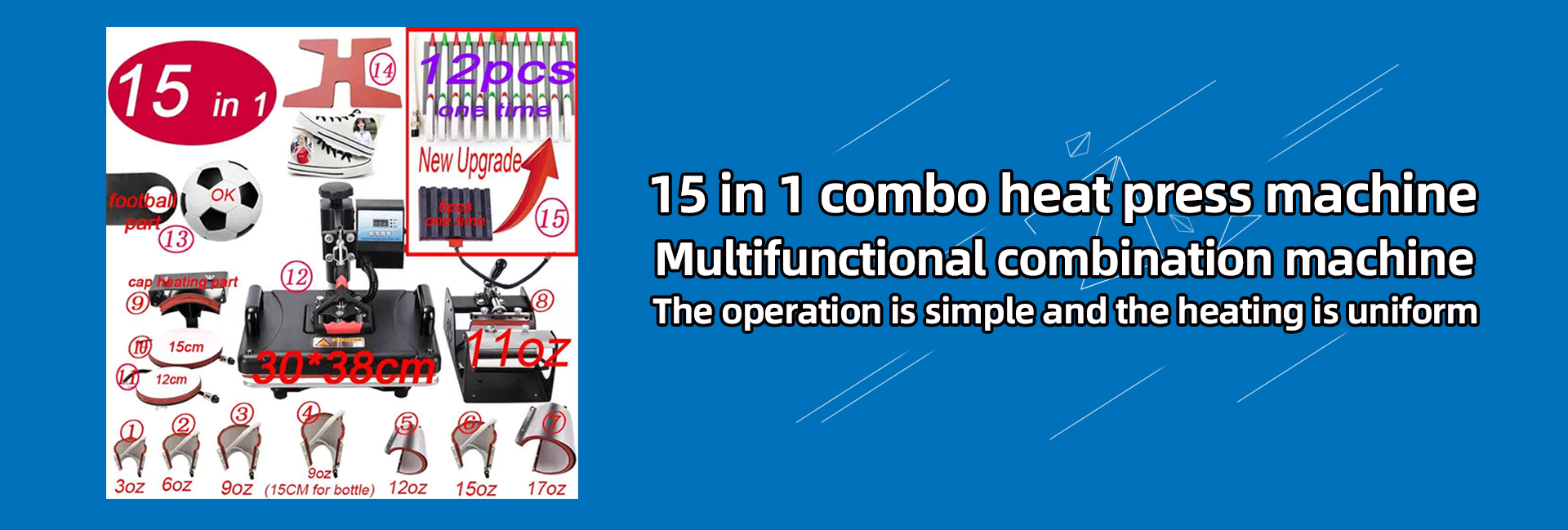 15 En 1 Combo de calor/máquina de prensado en caliente Taza Camiseta Tapa Placa Pluma Máquina de transferencia de calor Máquina de impresión por sublimación multifunción